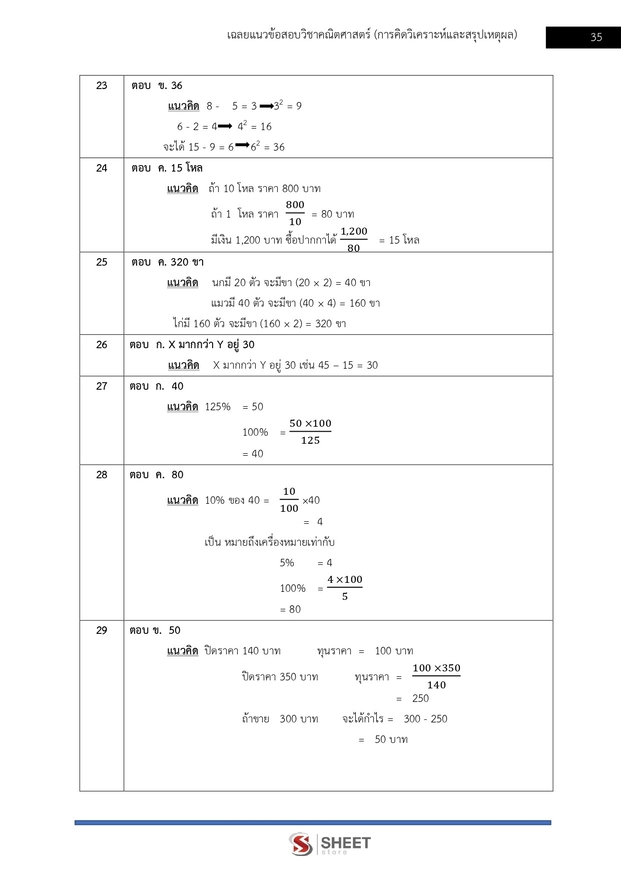 – แนวข้อสอบวิชาคณิตศาสตร์ วิเคราะห์และสรุปเหตุผล เฉลยพร้อมวิธีทำ