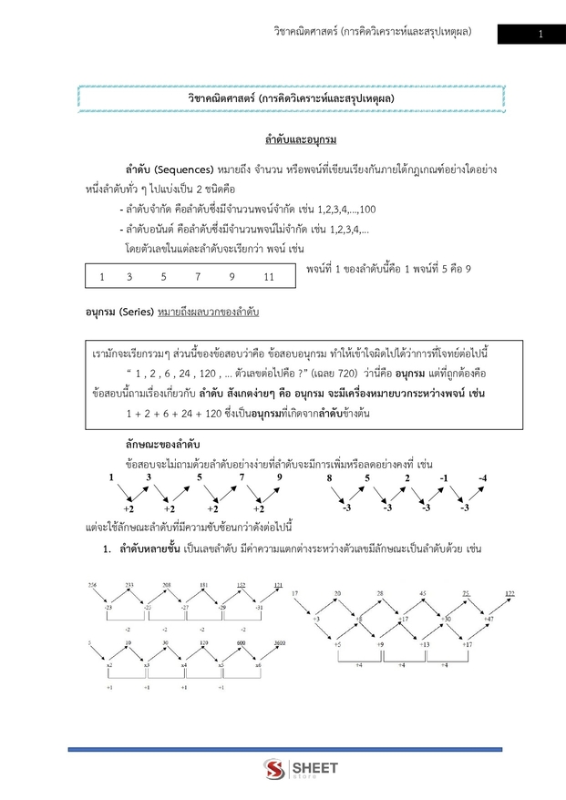 – วิชาคณิตศาสตร์ วิเคราะห์และสรุปเหตุผล