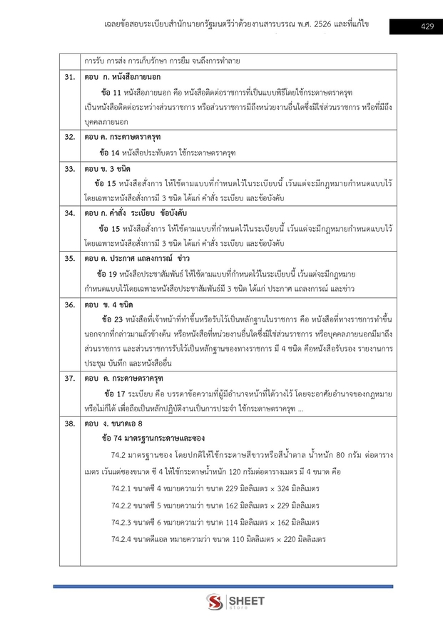 – แนวข้อสอบระเบียบสำนักนายกรัฐมนตรีว่าด้วยงานสารบรรณ พ.ศ. 2526 และที่แก้ไขเพิ่มเติมถึง (ฉบับที่ 4) พ.ศ. 2564