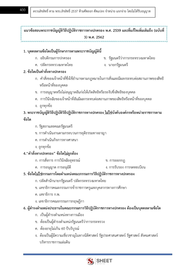 – แนวข้อสอบพระราชกฤษฎีกาว่าด้วยหลักเกณฑ์และวิธีการบริหารบ้านเมืองที่ดี พ.ศ. 2546 และที่แก้ไขเพิ่มเติม พ.ศ. 2562