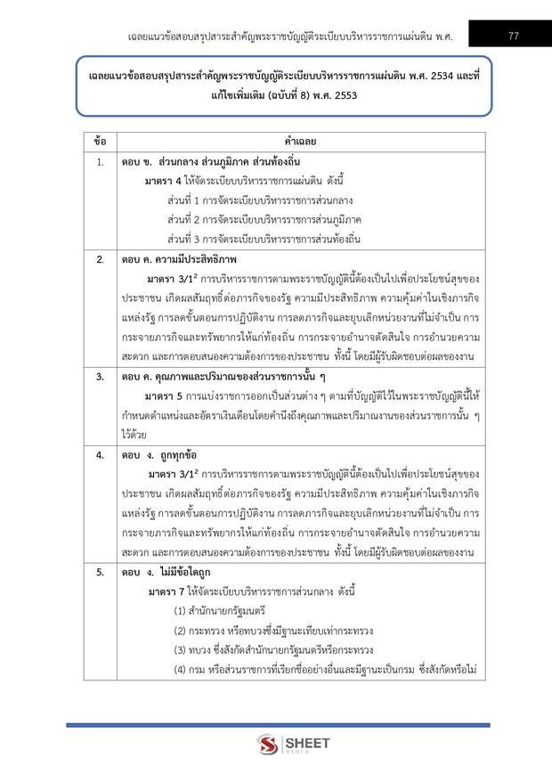 – แนวข้อสอบพระราชบัญญัติระเบียบบริหารราชการแผ่นดิน พ.ศ. 2534 และที่แก้ไขเพิ่มเติมถึง (ฉบับที่ 8) พ.ศ. 2553