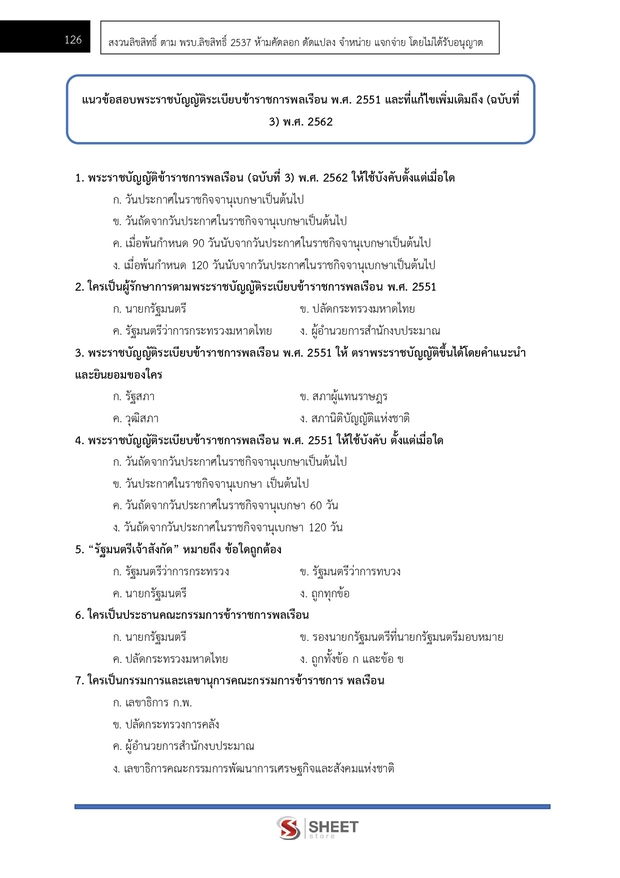 – แนวข้อสอบพระราชบัญญัติระเบียบข้าราชการพลเรือน พ.ศ. 2551 และที่แก้ไขเพิ่มเติมถึง (ฉบับที่ 3) พ.ศ. 2562