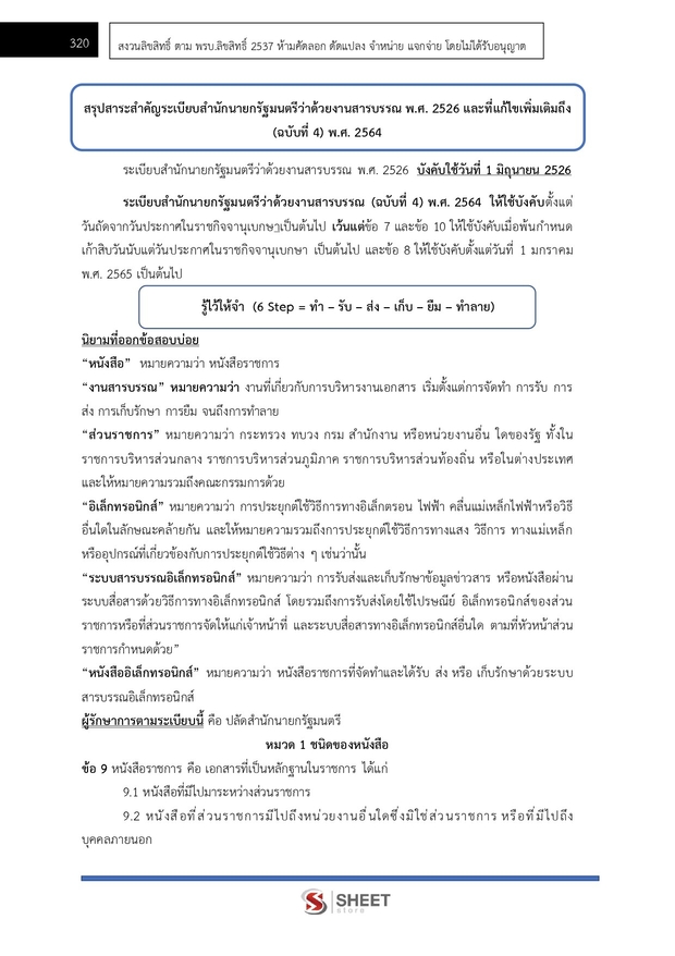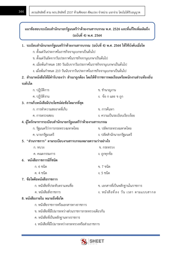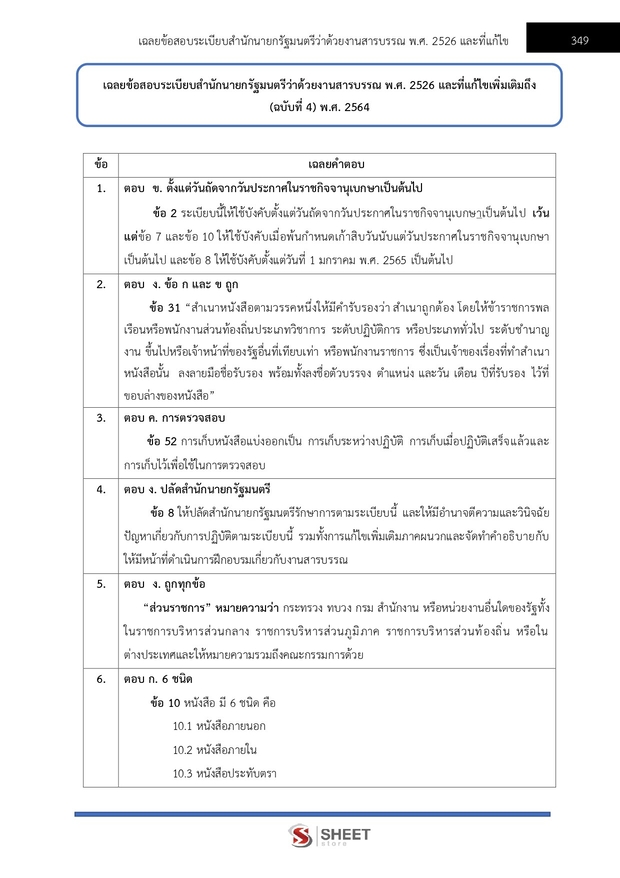 – แนวข้อสอบระเบียบสำนักนายกรัฐมนตรีว่าด้วยงานสารบรรณ พ.ศ. 2526 และที่แก้ไขเพิ่มเติมถึง (ฉบับที่ 4) พ.ศ. 2564