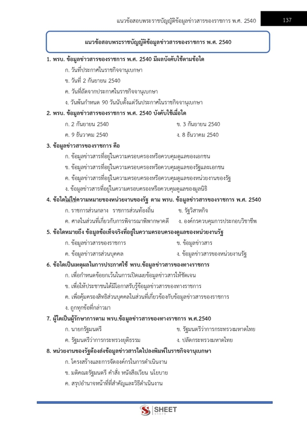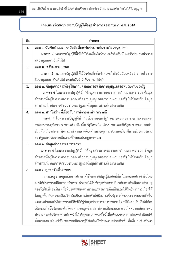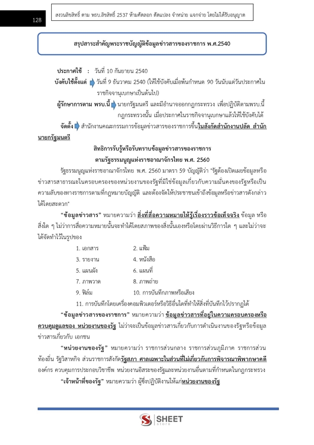 – แนวข้อสอบสรุปสาระสำคัญพระราชบัญญัติข้อมูลข่าวสารของราชการ พ.ศ. 2540