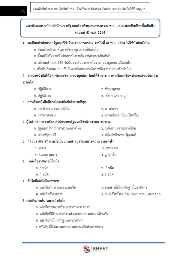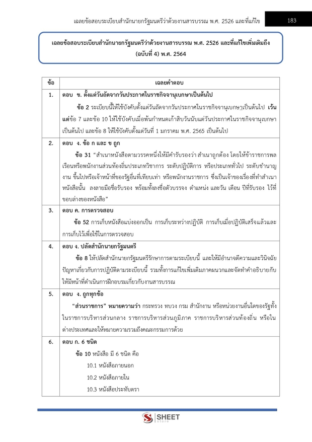 – แนวข้อสอบสรุปสาระสำคัญระเบียบสำนักนายกรัฐมนตรีว่าด้วยงานสารบรรณ พ.ศ. 2526 และที่แก้ไขเพิ่มเติมถึง (ฉบับที่ 4) พ.ศ. 2564