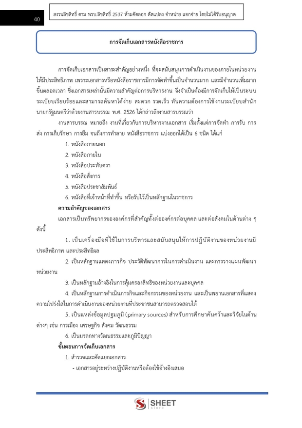 – การจัดเก็บเอกสารหนังสือราชการ