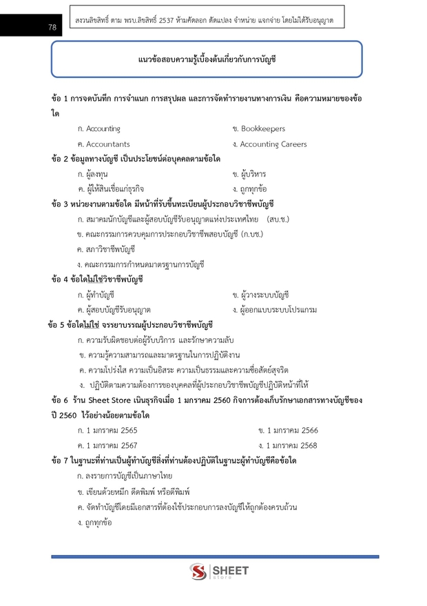 – แนวข้อสอบความรู้เบื้องต้นเกี่ยวกับการบัญชี