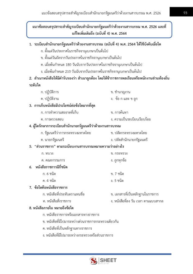 – แนวข้อสอบสรุปสาระสำคัญระเบียบสำนักนายกรัฐมนตรีว่าด้วยงานสารบรรณ พ.ศ. 2526 และที่แก้ไขเพิ่มเติมถึง (ฉบับที่ 4) พ.ศ. 2564