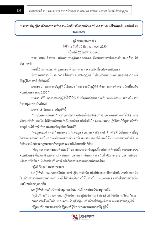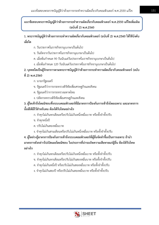 – แนวข้อสอบพระราชบัญญัติว่าด้วยการกระทำความผิดเกี่ยวกับคอมพิวเตอร์ พ.ศ. 2550 แก้ไขเพิ่มเติม (ฉบับที่ 2) พ.ศ. 2560