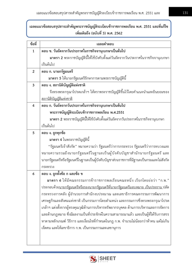 – แนวข้อสอบสรุปสาระสำคัญพระราชบัญญัติระเบียบข้าราชการพลเรือน พ.ศ. 2551 และที่แก้ไขเพิ่มเติมถึง (ฉบับที่ 3) พ.ศ. 2562