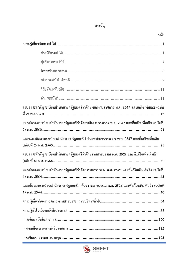 รายละเอียด สารบัญ แนวข้อสอบ เจ้าพนักงานธุรการ กรมป่าไม้ 2568