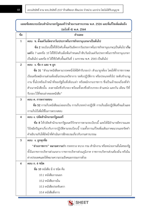 – แนวข้อสอบสรุปสาระสำคัญระเบียบสำนักนายกรัฐมนตรีว่าด้วยงานสารบรรณ พ.ศ. 2526 และที่แก้ไขเพิ่มเติมถึง (ฉบับที่ 4) พ.ศ. 2564