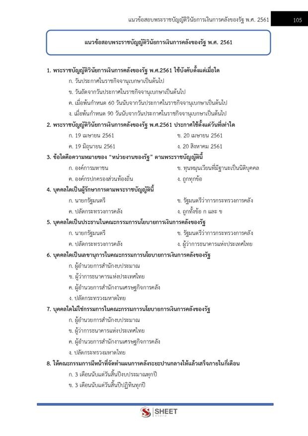 – แนวข้อสอบพระราชบัญญัติวินัยการเงินการคลังของรัฐ พ.ศ. 2561