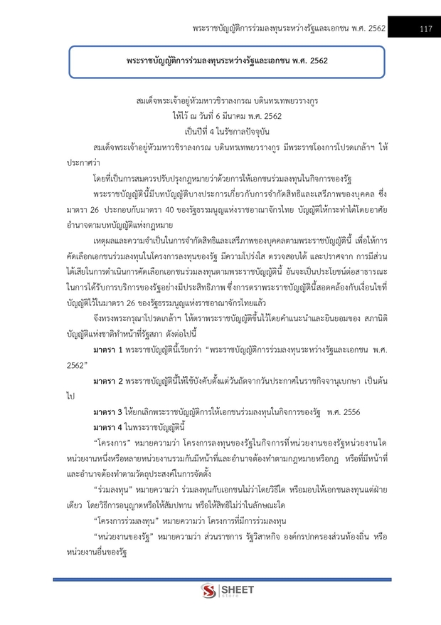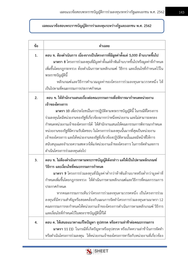 – แนวข้อสอบพระราชบัญญัติการร่วมลงทุนระหว่างรัฐและเอกชน พ.ศ. 2562