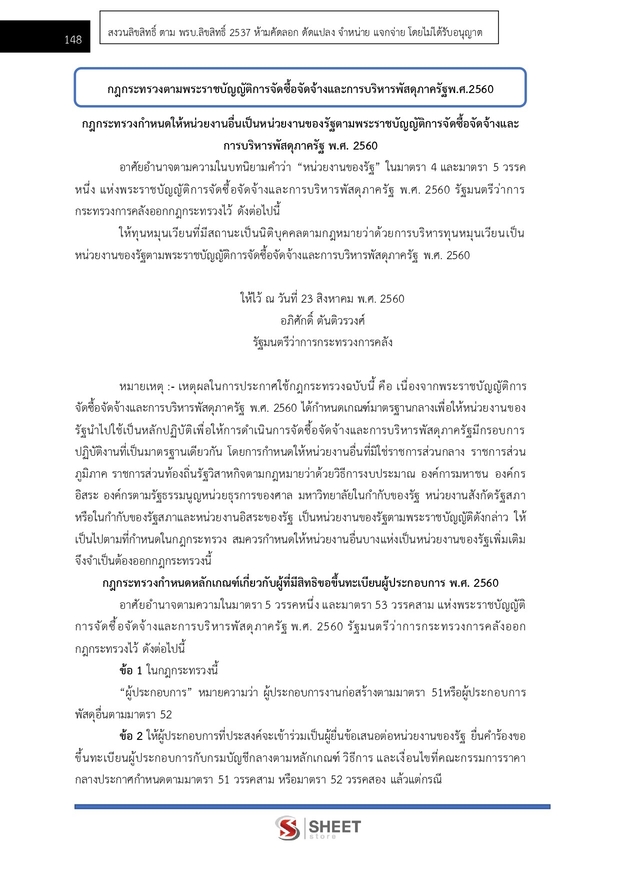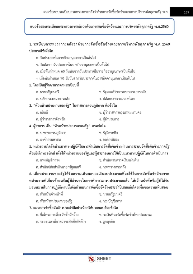 – แนวข้อสอบสรุปสาระสำคัญระเบียบกระทรวงการคลังว่าด้วยการจัดซื้อจัดจ้างและการบริหารพัสดุภาครัฐ พ.ศ. 2560