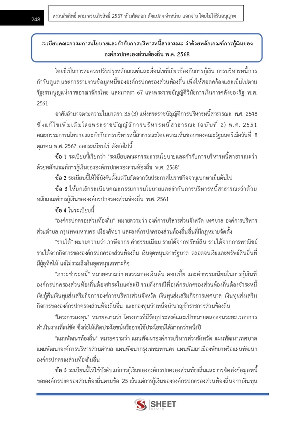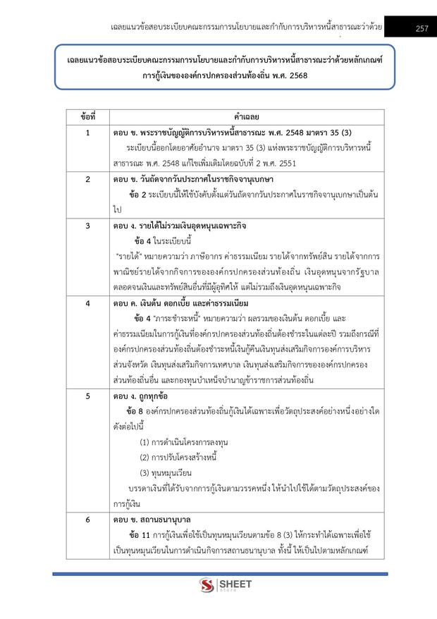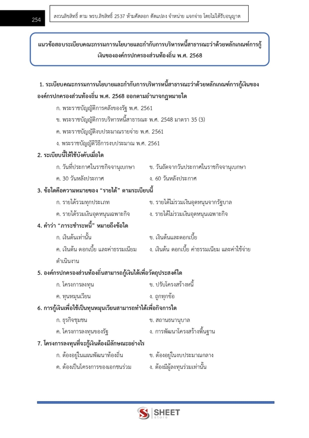 – แนวข้อสอบระเบียบคณะกรรมการนโยบายและกำกับการบริหารหนี้สาธารณะว่าด้วยหลักเกณฑ์การกู้เงินขององค์กรปกครองส่วนท้องถิ่น พ.ศ. 2568