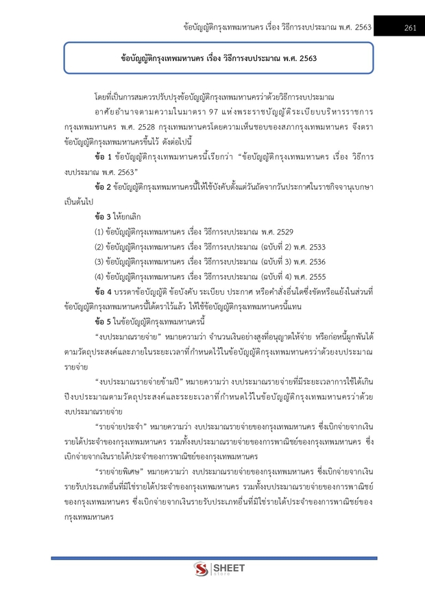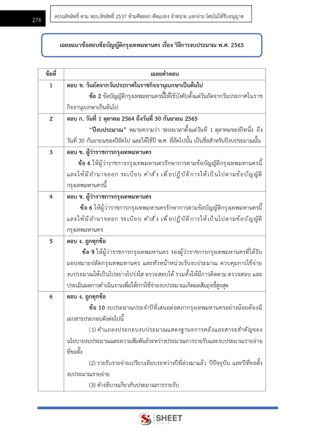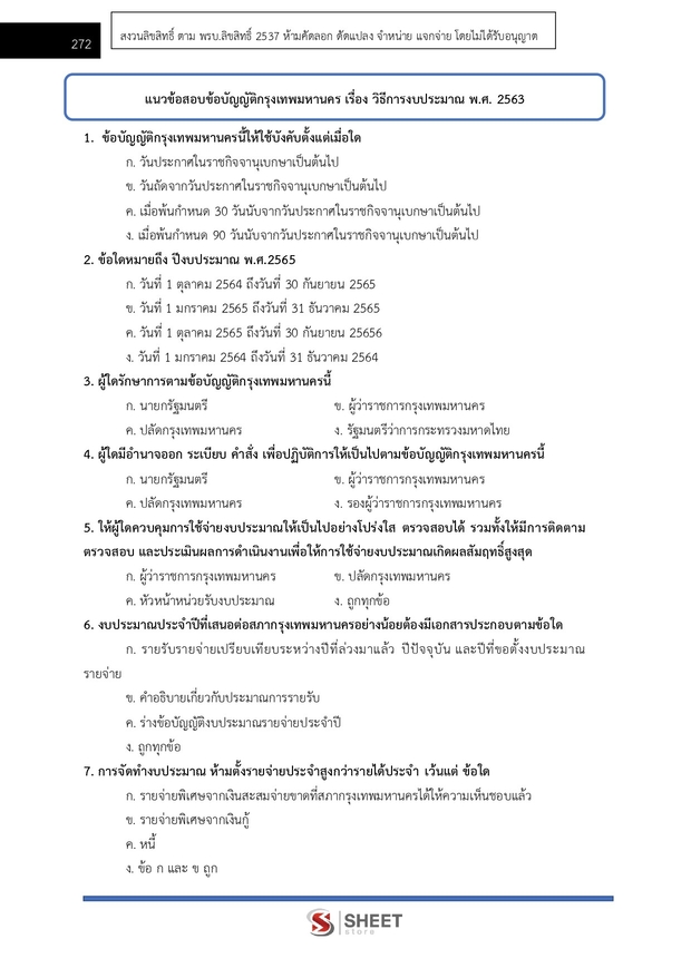 – แนวข้อสอบข้อบัญญัติกรุงเทพมหานคร เรื่อง วิธีการงบประมาณ พ.ศ. 2563
