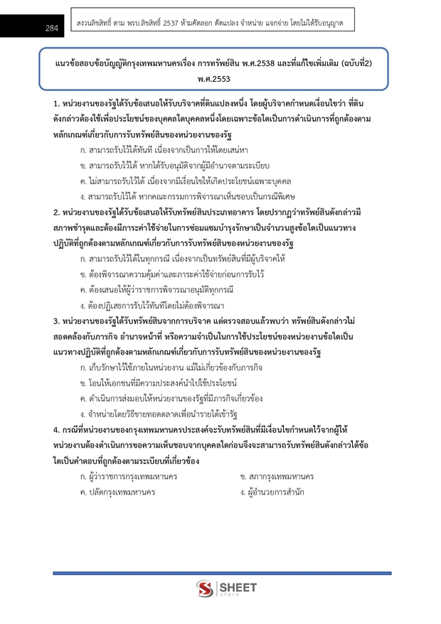 – แนวข้อสอบข้อบัญญัติกรุงเทพมหานคร เรื่อง การทรัพย์สิน พ.ศ. 2538 และที่แก้ไขเพิ่มเติม (ฉบับที่ 2) พ.ศ. 2553