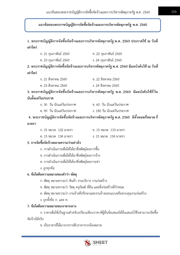 -แนวข้อสอบสรุปสาระสำคัญพระราชบัญญัติการจัดซื้อจัดจ้างและการบริหารพัสดุภาครัฐ พ.ศ.2560