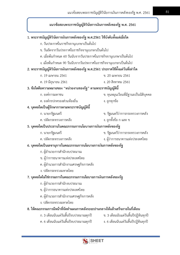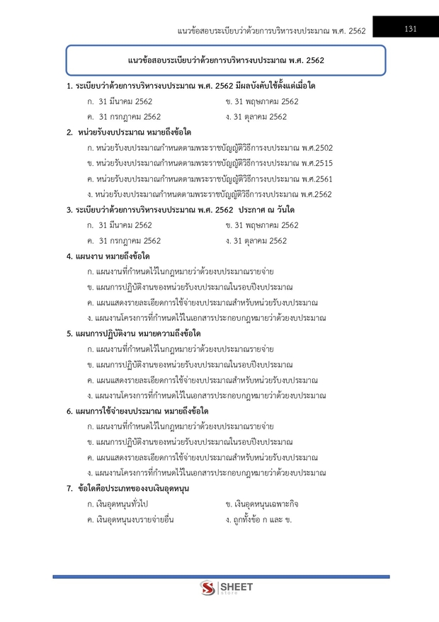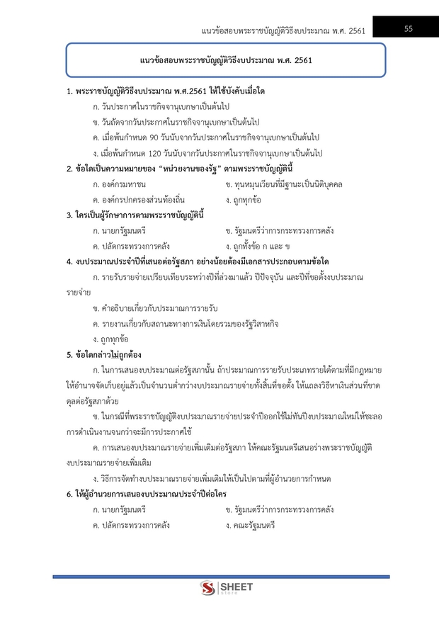 – แนวข้อสอบพระราชบัญญัติวิธีการงบประมาณ พ.ศ. 2561