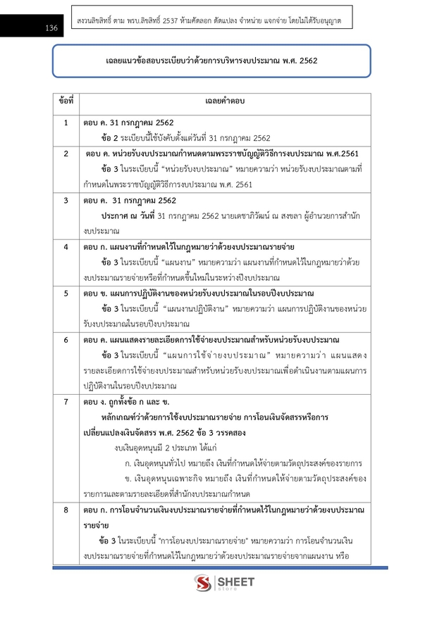 – แนวข้อสอบระเบียบว่าด้วยการบริหารงบประมาณ พ.ศ. 2562