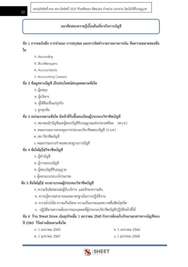 – แนวข้อสอบความรู้เบื้องต้นเกี่ยวกับการบัญชี