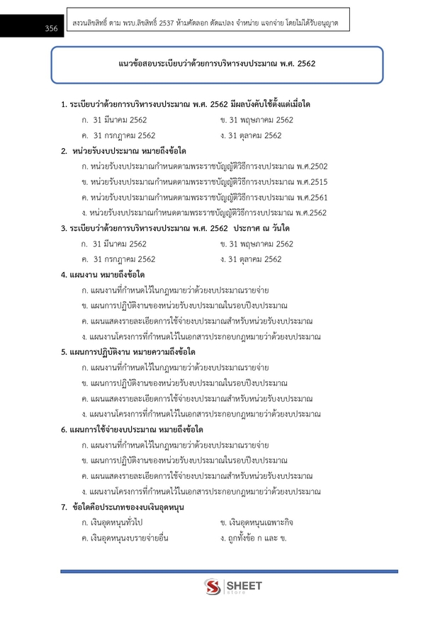 – แนวข้อสอบระเบียบว่าด้วยการบริหารงบประมาณ พ.ศ. 2562