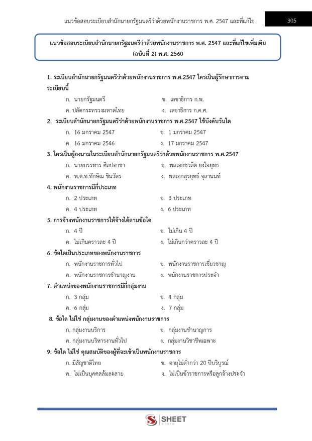 – แนวข้อสอบสรุปสาระสำคัญระเบียบสำนักนายกรัฐมนตรีว่าด้วยพนักงานราชการ พ.ศ. 2547 และแก้ไขเพิ่มเติม (ฉบับที่ 2) พ.ศ. 2560