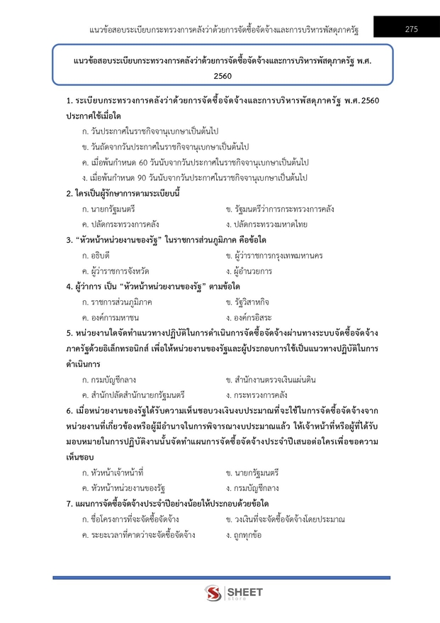 – แนวข้อสอบสรุปสาระสำคัญระเบียบกระทรวงการคลังว่าด้วยการจัดซื้อจัดจ้างและการบริหารพัสดุภาครัฐ พ.ศ. 2560
