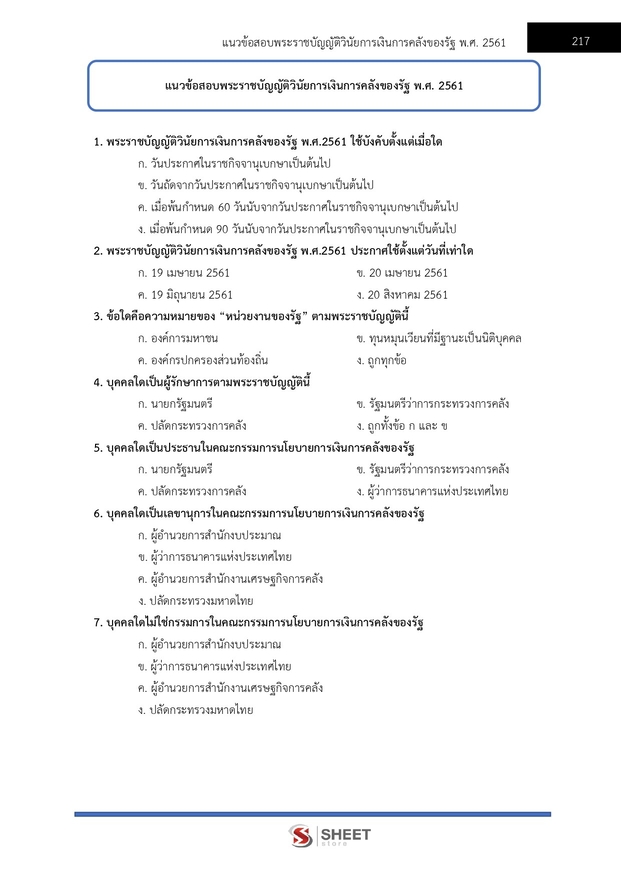 – แนวข้อสอบพระราชบัญญัติวินัยการเงินการคลังของรัฐ พ.ศ. 2561