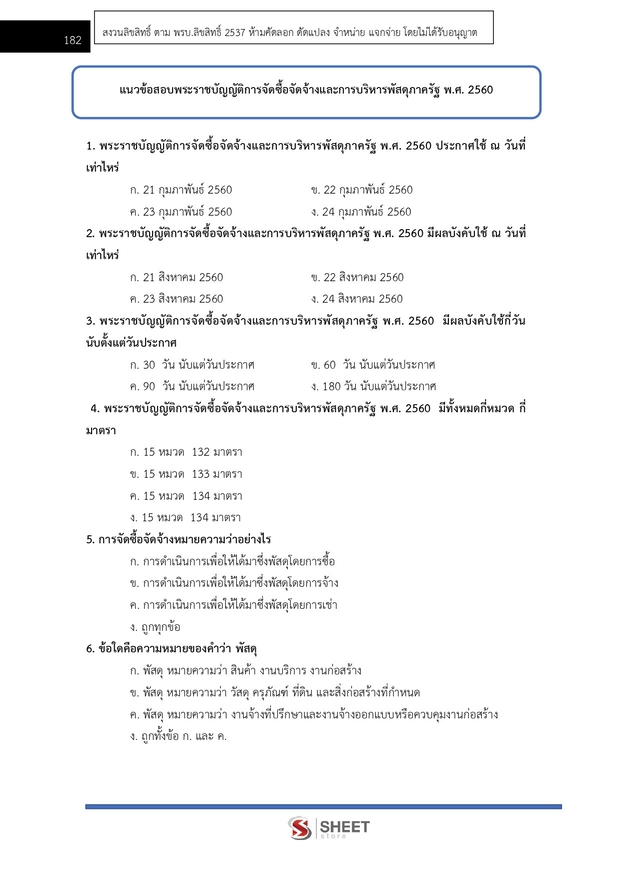 – แนวข้อสอบสรุปสาระสำคัญพระราชบัญญัติการจัดซื้อจัดจ้างและการบริหารพัสดุภาครัฐ พ.ศ. 2560