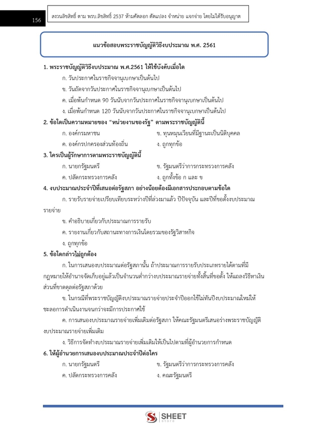 – แนวข้อสอบพระราชบัญญัติวิธีการงบประมาณ พ.ศ. 2561