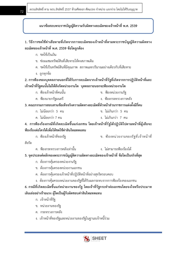 – แนวข้อสอบพระราชบัญญัติความรับผิดทางละเมิดของเจ้าหน้าที่ พ.ศ. 2539
