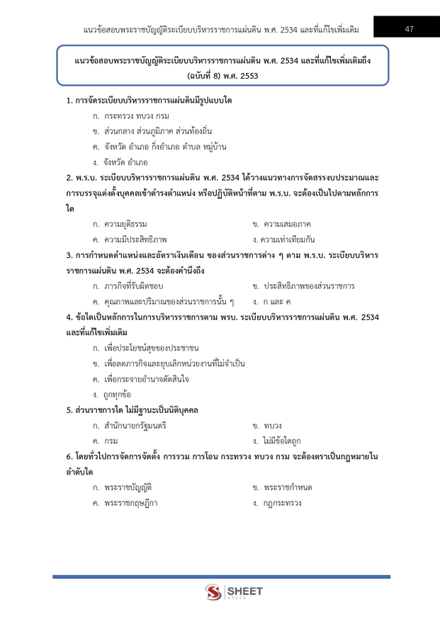 – แนวข้อสอบสรุปสาระสำคัญพระราชกฤษฎีกาว่าด้วยหลักเกณฑ์และวิธีการบริหารกิจการบ้านเมืองที่ดี พ.ศ. 2546 และที่แก้ไขเพิ่มเติมถึง (ฉบับที่ 2) พ.ศ. 2562