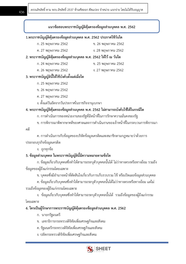 – แนวข้อสอบพระราชบัญญัติคุ้มครองข้อมูลส่วนบุคคล พ.ศ. 2562