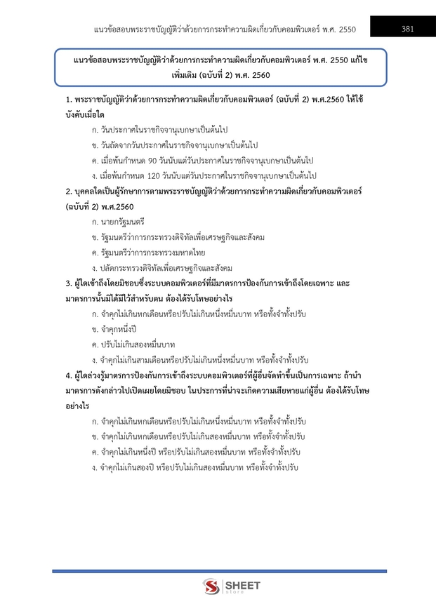 – แนวข้อสอบพระราชบัญญัติว่าด้วยการกระทำความผิดเกี่ยวกับคอมพิวเตอร์ พ.ศ. 2550 แก้ไขเพิ่มเติม (ฉบับที่ 2) พ.ศ. 2560