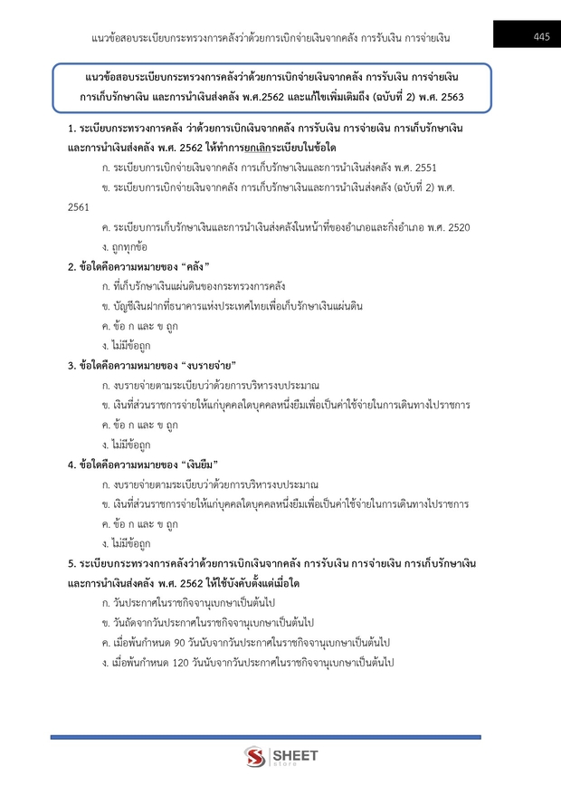 – แนวข้อสอบระเบียบกระทรวงการคลังว่าด้วยการเบิกเงินจากคลัง การรับเงิน การจ่ายเงิน การเก็บรักษาเงินและการนำเงินส่งคลัง พ.ศ. 2562 และที่แก้ไขเพิ่มเติมถึง (ฉบับที่ 2) พ.ศ. 2563