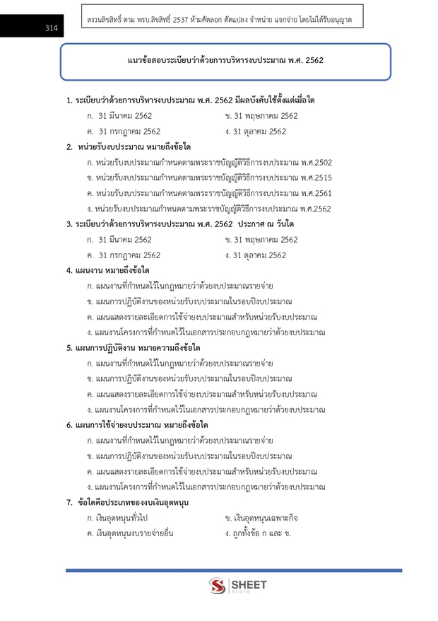 – แนวข้อสอบระเบียบว่าด้วยการบริหารงบประมาณ พ.ศ. 2562