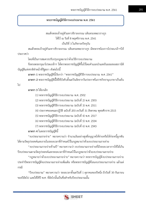 – พระราชบัญญัติวิธีการงบประมาณ พ.ศ. 2561
