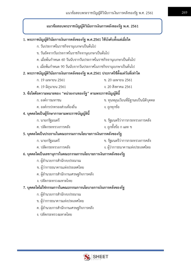 – แนวข้อสอบพระราชบัญญัติวินัยการเงินการคลังของรัฐ พ.ศ. 2561