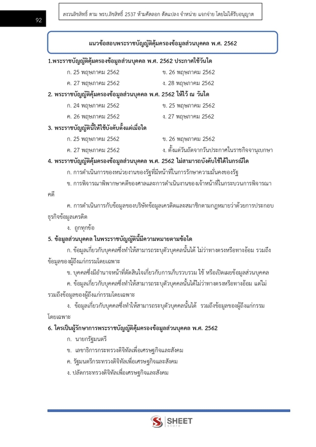 – แนวข้อสอบพระราชบัญญัติคุ้มครองข้อมูลส่วนบุคคล พ.ศ. 2562