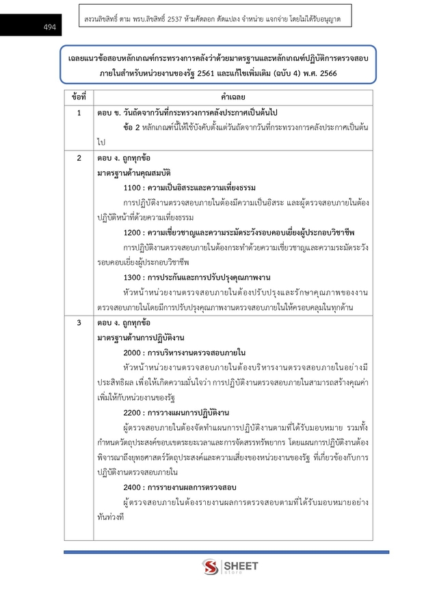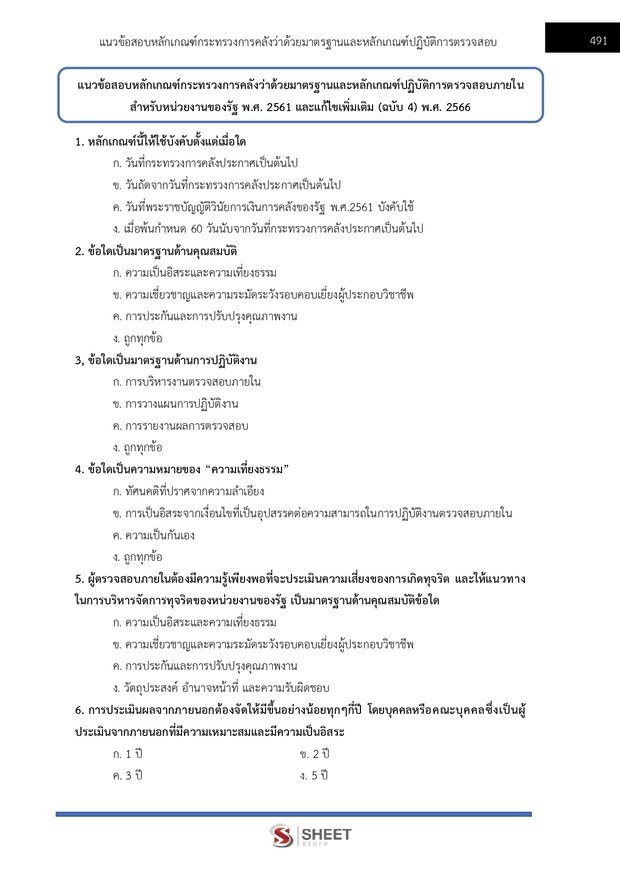 – แนวข้อสอบหลักเกณฑ์กระทรวงการคลังว่าด้วยมาตรฐานและหลักเกณฑ์ปฏิบัติการตรวจสอบภายในสำหรับหน่วยงานของรัฐ พ.ศ. 2561 และแก้ไขเพิ่มเติม (ฉบับ 4)