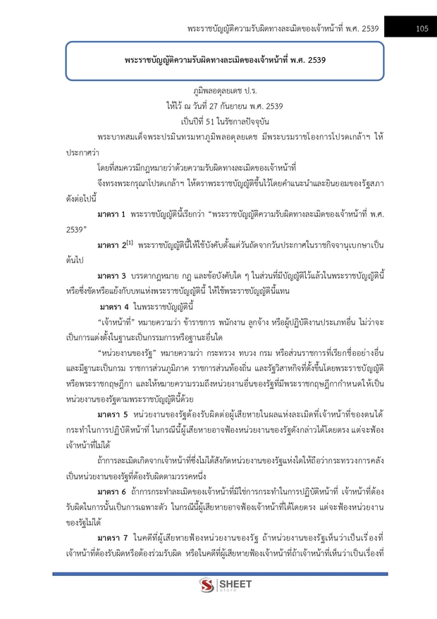 – พระราชบัญญัติความรับผิดทางละเมิดของเจ้าหน้าที่ พ.ศ. 2539
