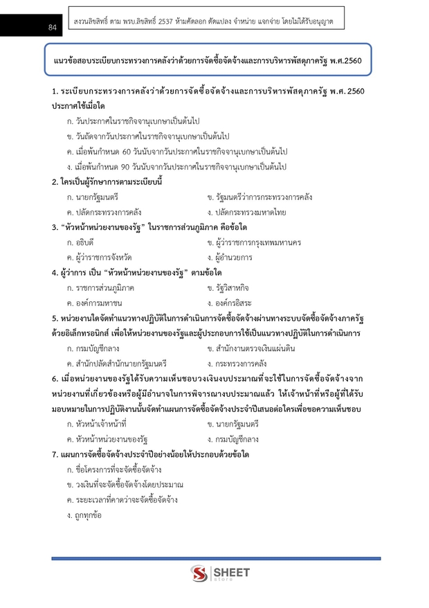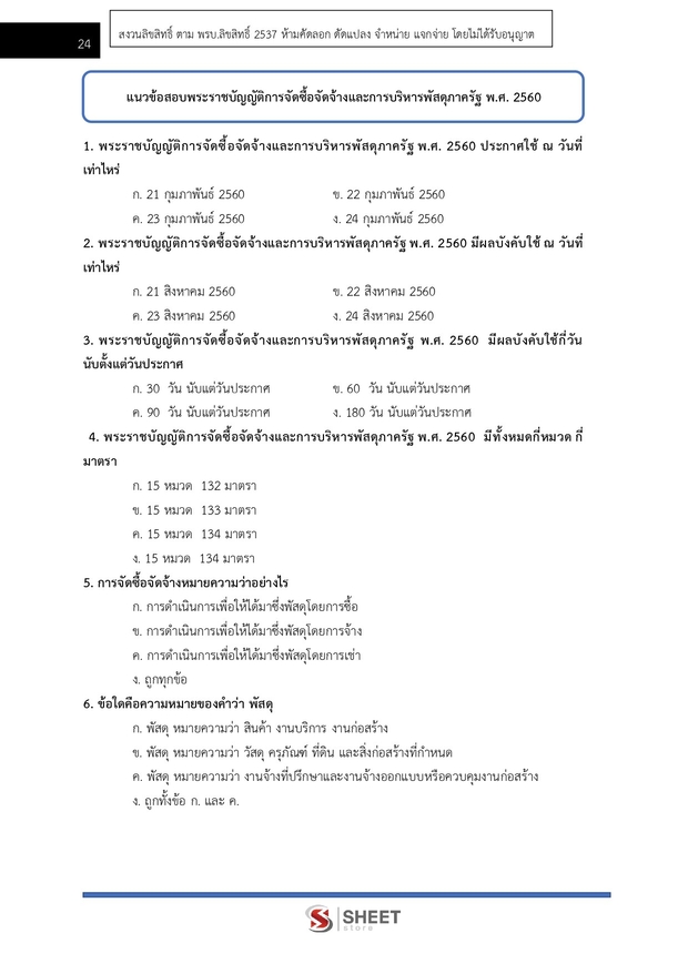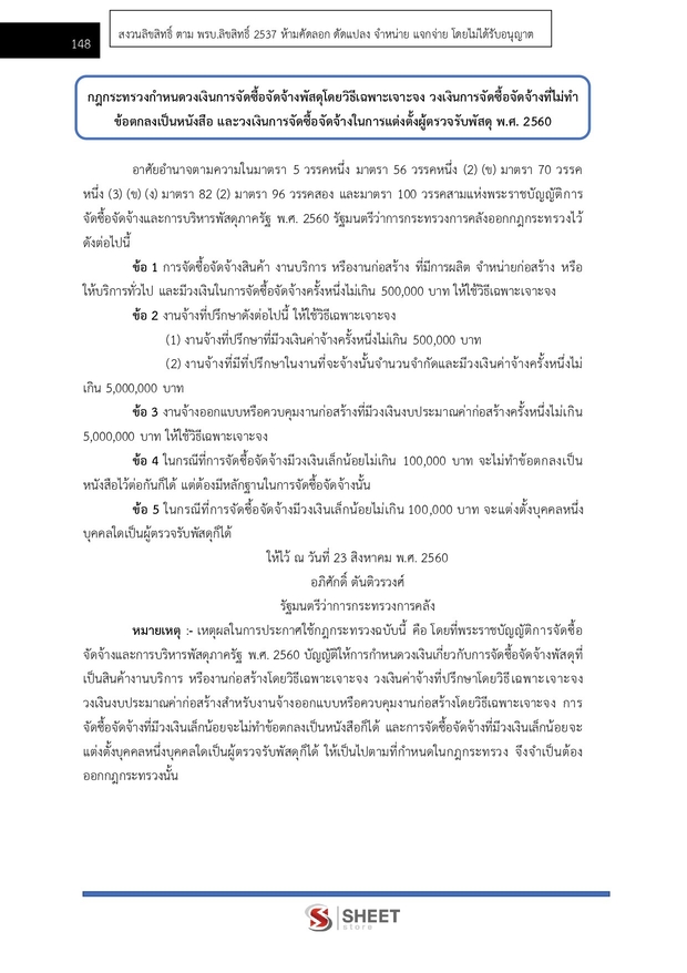 – แนวข้อสอบสรุปสาระสำคัญระเบียบกระทรวงการคลังว่าด้วยการจัดซื้อจัดจ้างและการบริหารพัสดุภาครัฐ พ.ศ. 2560