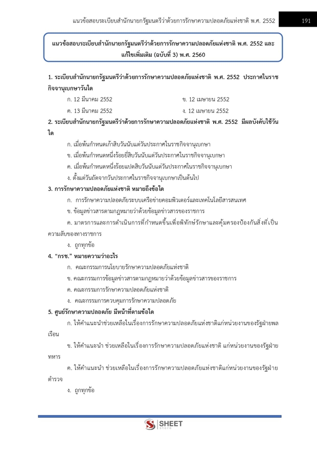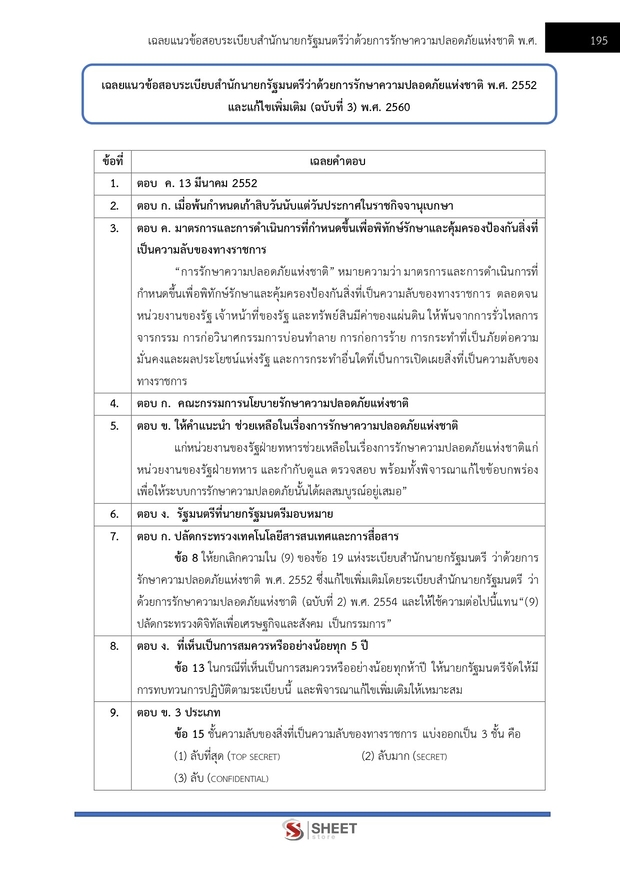 – แนวข้อสอบระเบียบสำนักนายกรัฐมนตรีว่าด้วยการรักษาความปลอดภัยแห่งชาติ พ.ศ. 2552 และแก้ไขเพิ่มเติม (ฉบับที่ 3) พ.ศ. 2560