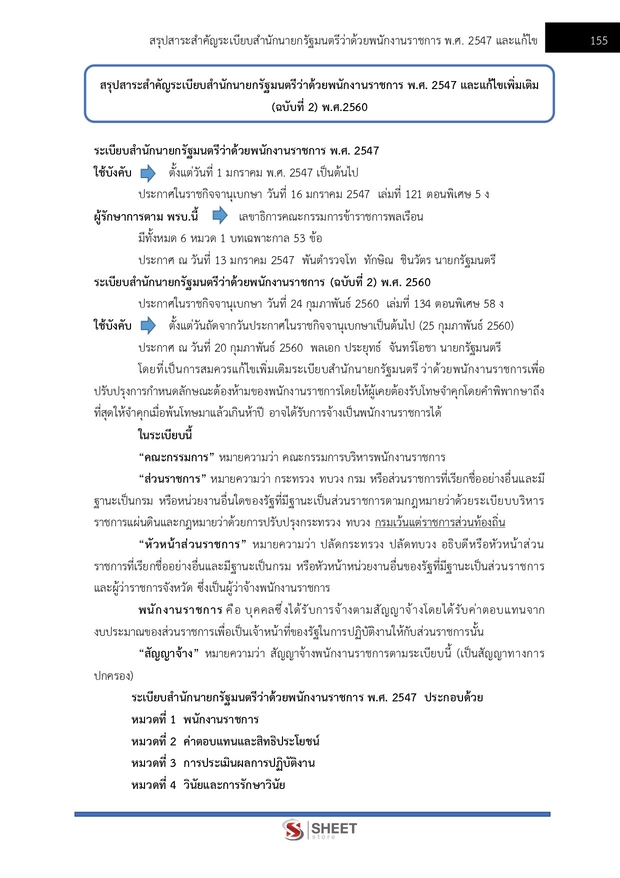 – แนวข้อสอบสรุปสาระสำคัญระเบียบสำนักนายกรัฐมนตรีว่าด้วยพนักงานราชการ พ.ศ. 2547 และแก้ไขเพิ่มเติม (ฉบับที่ 2) พ.ศ. 2560
