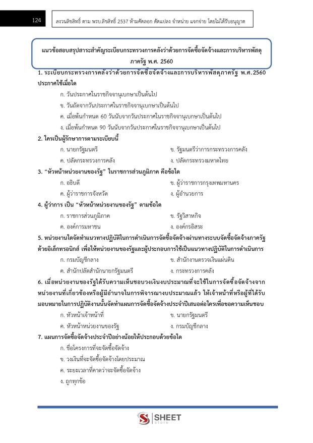 – แนวข้อสอบสรุปสาระสำคัญระเบียบกระทรวงการคลังว่าด้วยการจัดซื้อจัดจ้างและการบริหารพัสดุภาครัฐ พ.ศ. 2560