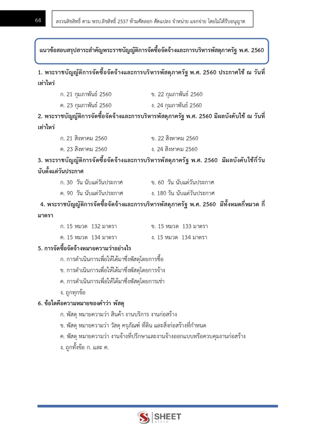 – แนวข้อสอบสรุปสาระสำคัญพระราชบัญญัติการจัดซื้อจัดจ้างและการบริหารพัสดุภาครัฐ พ.ศ. 2560