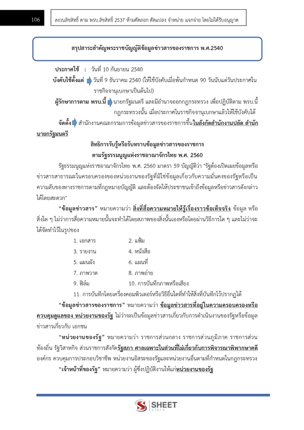 – แนวข้อสอบสรุปสาระสำคัญพระราชบัญญัติข้อมูลข่าวสารของราชการ พ.ศ.2540