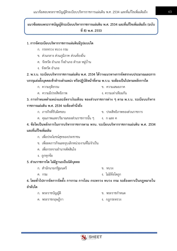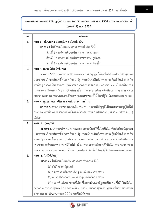 – แนวข้อสอบสรุปสาระสำคัญพระราชบัญญัติระเบียบบริหารราชการแผ่นดิน พ.ศ.2534 และที่แก้ไขเพิ่มเติม (ฉบับที่ 8) พ.ศ.2553